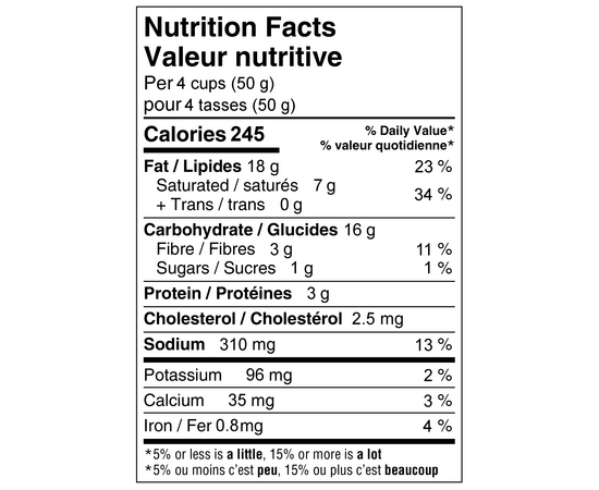 We slowly infuse creamy, rich cheese into small batches of light, tender corn to create some serious cheese flavoured popcorn! This superior blend of real cheddar cheese will make anyone’s mouth water!